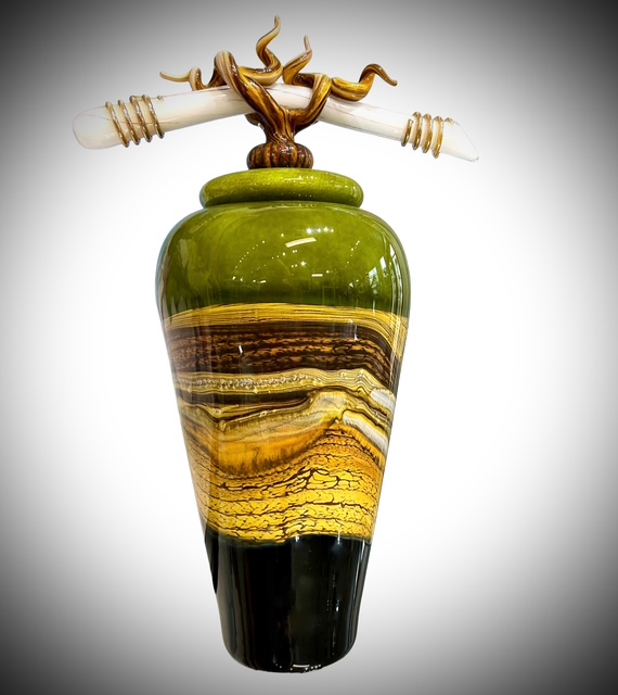 Gartner Blade is the collaborative work of Danielle Blade & Stephen Gartner. Business partners since 1996, they combine their ideas, techniques, and experiences to create original works in both blown and sculpted hot glass. They are continually developing pieces that explore their interpretation of objects commonly used in rituals and worship. The inspiration for these pieces begins with their mutual fascination with the many vessels and sculptural objects that are revered in rituals of both primitive and contemporary cultures. Natural elements such as bone, wood, vine and rock formations combine with our highly original color palette to create their signature pieces. Their work merges traditional hand blown glass techniques with innovative color applications and original sculpting techniques.